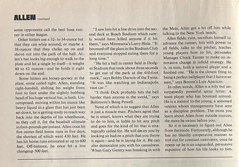 Allen's ..398 on base percentage was third in baseball — behind future Hall of Famers Joe Morgan (.416) and Rod Carew (.406).