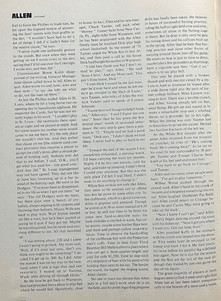 But when training camp opened in February, Allen was nowhere to be found. It was the beginning of a strange contract holdout in which Allen miscommunicated not only with the White Sox, but his own agent. He agreed to a contract then he didn't. At one point, Sox general manager Roland Hemond was unable to return a phone message from Allen because the last digit of Allen's phone number was missing from the message.