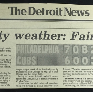 But it did conjure memories of the greatest slugfest in the history of Wrigley Field — the Phillies' 23-22 victory in 10 innings on May 17, 1979. The Phillies led 7-6 after one and 21-9 into the bottom of the fifth before the Cubs rallied to tied the game 22-22 on Barry Foote's ground single to left field that scored Steve Ontiveros. (I somehow managed to faintly hear that game-tying hit on WGN radio from my room in Columbia, Mo. as a sophomore in college.)